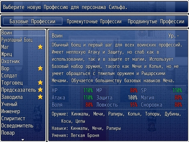 Промежуточные профессии — нужны, когда вы уже определились с ролью персонажа и хотите сделать его сильнее. Однако они прокачиваются медленнее базовых.
