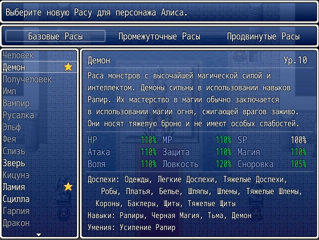 Базовые расы — наиболее слабые расы, доступные персонажам.