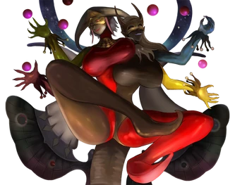 Alipheese Fateburn XI + XII (Eleventh and Twelth) or Alicefeeze Fatalbern XI + XII (アリスフィーズ11世+12世, Arisufīzu 11-sei + 12-sei) is a fusion of two of the former Monster Lords. They first appear in Monster Girl Quest! Paradox RPG Chapter 1.
