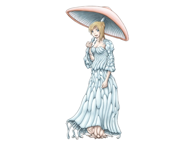 “A plant monster that has many characteristics similar to a mushroom. Though it appears as though she’s wearing clothes, it is in fact just her fungal body. Her characteristic parasol is used to shield her from direct sunlight.