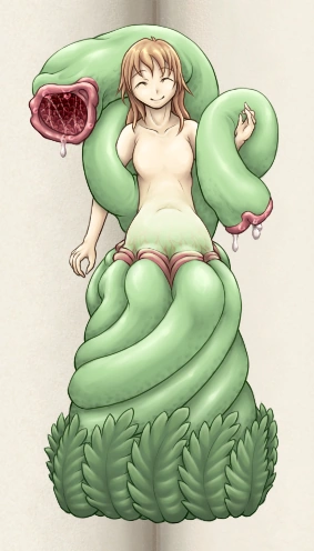 “A plant monster of the Alraune species. An unusual plant that only eats meat, she uses the mouth’s on the end of her ivy to devour her prey. She is capable of photosynthesis, but the energy obtained is inefficient.