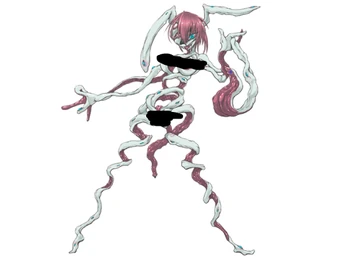 "Amphil appears to be an apoptosized parasitic tapeworm, but the details are unknown. Her body is highly flexible, and she is able to make her head and other organs appear anywhere. The mind of a human woman also appears to be mixed into her personality, making her true identity is a mystery."