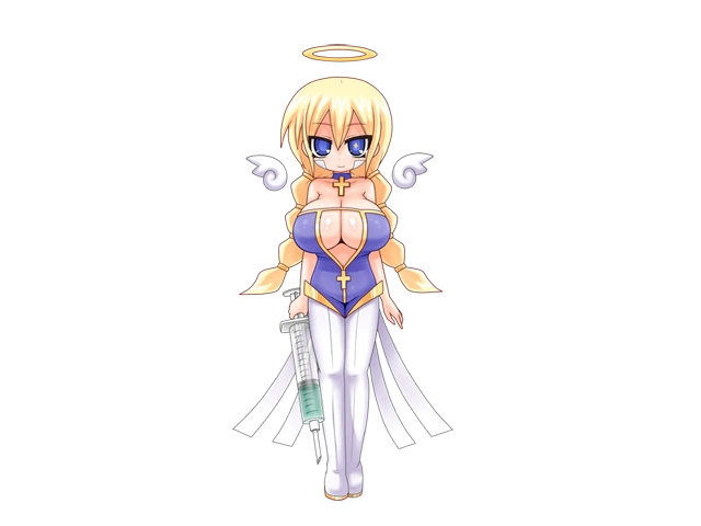 "Gang-raped by angels... For a breast-lover like you, that must have been quite an unexpected reward. Angel Soldiers use Lightning attacks, Physical attacks and Holy attacks. They also use support magic, making them quite annoying. Their defenses are high but they are weak to Pleasure and Dark attacks. Focus on attacking with Pleasure because status ailments hardly ever work. Now go, oh Brave Luka. Breasts are meant to be milked, not be the milkers..."