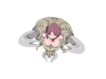 “An insect-based monster that lives mainly in the desert, she creates a cone-shaped nest in the ground to catch unsuspecting travellers in order to squeeze out their bodily fluids. Preferring male semen, she will use her massive scissors to lock the man’s waist in place as she sucks everything out. Once her catch has been completely sucked dry, she will dispose of their dried corpse in the desert. Although her trap is extremely dangerous, her body is very fragile. The only way to escape is to quickly defeat her before you’re brought too far in.