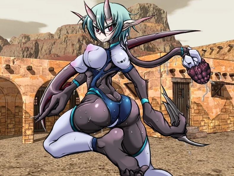 Assassinroid is a chimera attacking Gold Port in Chapter 3, leading all the Trooperoids. As her name suggests, she is extremely skilled in the art of stealth, speed and assassination and is designed to kill even queen class monsters. She is equipped with a unit that allows her to turn invisible, but in turn causes her body to overheat rapidly which appears to be hazardous to her health if not vented. Her head is a vent that dumps out the excessive heat, but this leaves her vulnerable to attack. Attached to the back of her head is a tentacle that possesses a second set of genitals, used for raping men.