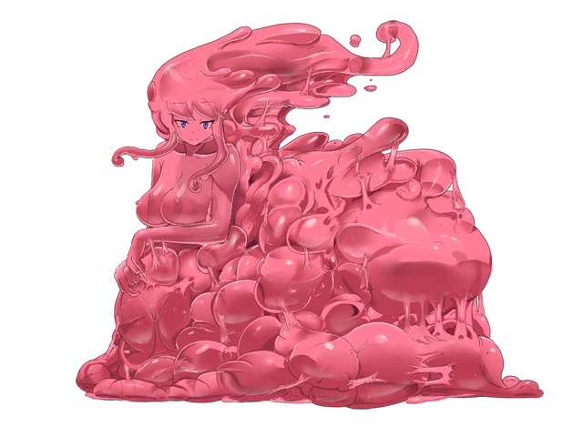 “A carnivorous monster of the slime race. The Blob Girl herself is made up of digestive juices. Any prey who’s taken into her body will never escape. As the man is stuck inside of her body, his semen is squeezed out while he’s slowly digested.