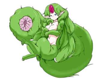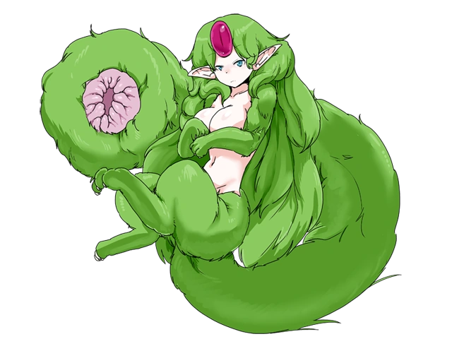 While she is very calm and intelligent for a beast monster, she greedily ingests semen using the squeezing hole of her tail to suck it out of the man’s penis. The soft flesh wrapped around the penis rubs and contracts to pump out semen. The man she squeezes will be released, but he will be weakened so much that he won’t be able to stand for a few days.”