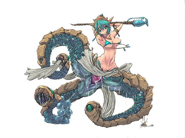 “A subspecies of Scylla adapted to the desert. She is able to swim freely in the shifting sands, and can make the sands flow at her whim. Due to living in the harsh desert she always needs moisture, which she acquires by capturing human prey with her tentacles as the person is unable to move in the flowing sand. Prey is scarce in the desert, so every drop of fluid from their catch will be squeezed out.