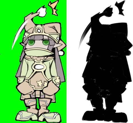 No need for the black-green images. Just do what we've always done, unless you're waiting for the translation so it'll be easier. Just take a screenshot(printscreen?) of the monster "start-up" pose in-game, and if they nipples or other nuaghty bits showing, just censor them. For the nipple we just sort of blend the colors together to make it look like they have no nipples. Juni221 (talk) 17:49, June 1, 2013 (UTC)