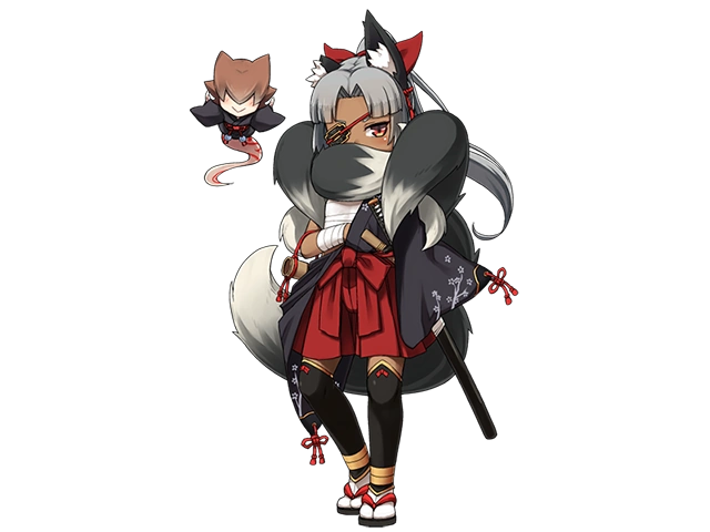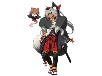 “A senior kitsune with four tails who pursues the art of bushido and is earnestly training herself. Most kitsune are two-tailed, with three- and four-tailed being considered elites among their race. However, the difference between three tails and four is small compared to the large wall separating two tails and three, so their power is considered to be almost equal. The same is true for five- and six-tails, and are said to be in contact with Nanabi and Yao.