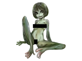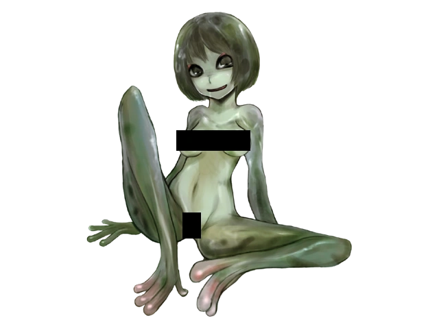 "An amphibious monster, they infest streams and wetlands. They prefer feeding on humans, and will generally attack them in swarms. Once the man is caught, they will use their tongues to lick them to ejaculation. Their skillful use of their long tongues can easily lick their prey dry. Since there are usually many of them, their feeding never stops with a single ejaculation."