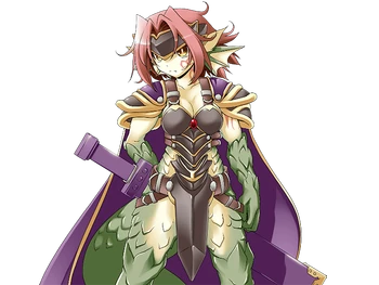 “A powerful monster of the dragon race, she is one of the Four Heavenly Knights. Devoting herself to the sword, there is nobody in the world who can match her flaming sword. Swearing loyalty to the Monster Lord, she takes great pride in her position. With a chivalrous spirit, she avoids useless violence against the weak.