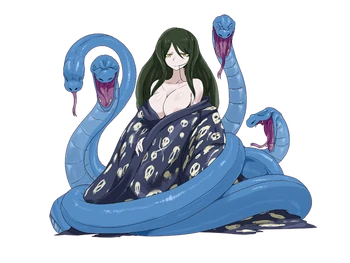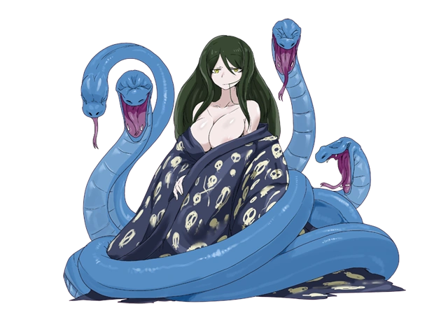 “A very powerful Youkai with snakes around her body. In addition to having incredible vitality and magical power, she is also very brutal and sadistic, giving her a reputation for being extremely dangerous among Youkai. However, because she only inhabits the continent of Hellgondo, ordinary people will never encounter her.