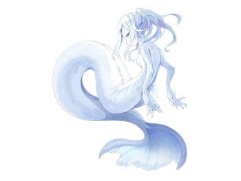“A mermaid of the highest class living beyond the great waterfall. Her lineage is closely linked to the ancient progenitor species, and their numbers are very few. In addition to boasting a strong body and great magical power, her singing voice can water down any man who hears it.