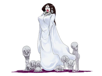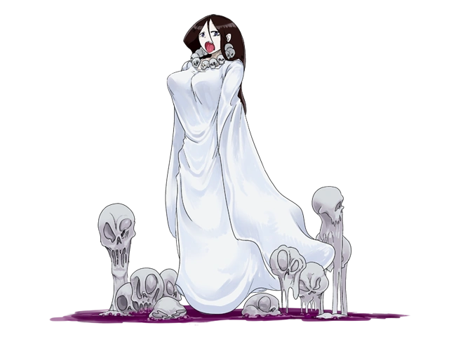 “An advanced variant of the Ghost race, she wields powerful magic and a terrible grudge. A large amount of ectoplasm drips from her form, giving her a viscous body. Such ghosts are said to only inhabit places with high spiritual energy, and such places only seem to exist around the continent of Hellgondo.