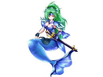 “A mermaid warrior who has trained herself in the sword arts. She has an unyielding personality and is always polishing her skills as she seeks strong opponents to challenge. She seems to be the rival of the Harpy Knight, and they frequently engage in friendly sparring matches to test their skills.