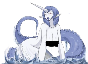 “A huge sea serpent roaming the open seas. Regular narwhals are mammals, but this monster also has traits of a gigantic serpent. Her body is larger than a ship and she has a ferocious nature. She attacks ships to capture men and exhaustively squeezes their semen. She is proud of the tremendous power that comes with her huge body, and she becomes more intelligent when she goes berserk. Along with the Manta Girl, she is one of the most famous and powerful monsters of the open seas.