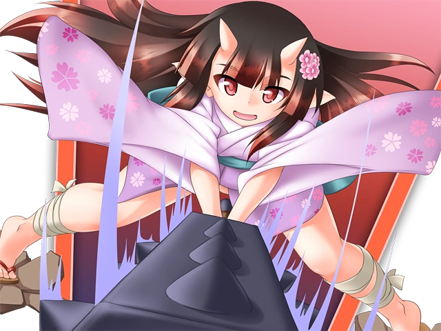 “A demi-human monster also known as a Youkai in the Yamatai region. She boasts extraordinary strength despite her small size, and a blow from her club is able to shatter large boulders.