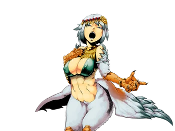 “A powerful bird monster that roams the Northern Sea. Using her seductive voice, she tempts sailors to her, and then extracts all of their semen. Due to the potential for loss of life, experienced sailors usually travel with earplugs.