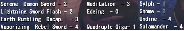 Each time Luka uses a skill, his Skill Points will drain according to the SP cost of the skill invoked. Without the necessary skill points, he is unable to utilize his skills.