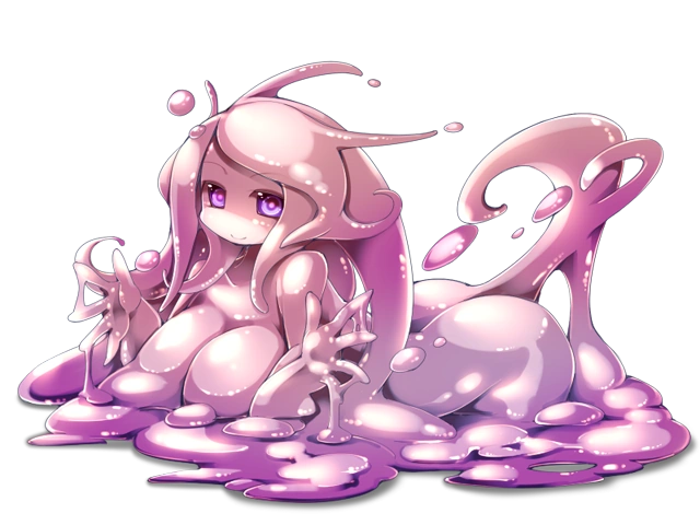 Though she can easily survive on any sort of meat, she finds devouring humans to be the most fun. Covering her prey with her entire body, the digesting slime paralyses them with extreme pleasure as she preys on them.”