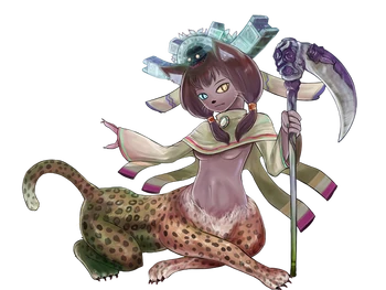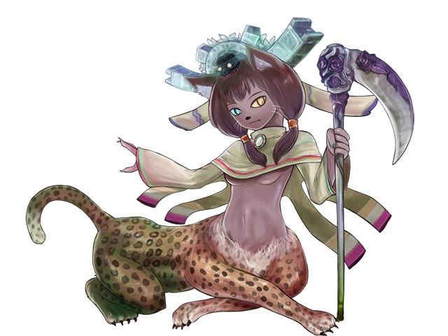 “A jaguar monster that existed in ancient times. She boasts a tough body and enormous magical power and was once revered as a god by the people of the ancient jungle. She was sealed away by angels under the command of Ilias and her traditions were buried from history.