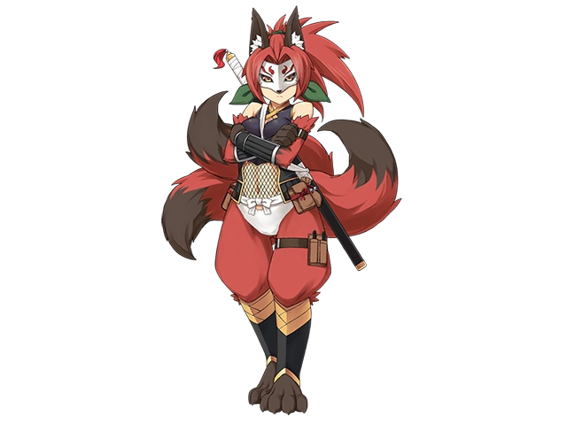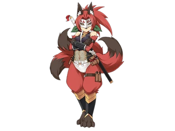 “A senior kitsune with three tails who has mastered ninjutsu and is working as a kunoichi. Most kitsune are two-tailed, with three- and four-tailed being considered elites among their race. However, the difference between three tails and four is small compared to the large wall separating two tails and three, so their power is considered to be almost equal. The same is true for five- and six-tails, and are said to be in contact with Nanabi and Yao.