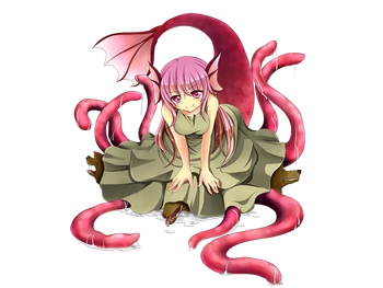 “A subspecies of Scylla whose lower body consists of multiple wolf heads and tentacles. They are regarded as the oldest species among the Scylla race, and take pride in the notion that they are the rightful Scylla. Thus, they are sometimes hostile towards other types of Scylla (who are now the common tentacle type). Of course, the wolves of her lower body are also a part of her.