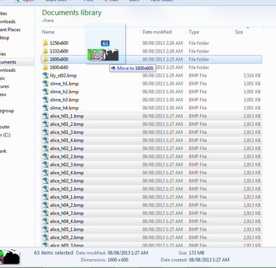 Open the "chara" folder in Windows explorer. Set the view mode to "details". Sort by filesize. Create new folders and name them based on image dimensions (e.g. 1600x600), and place all images that match those dimensions in the corresponding folder.
