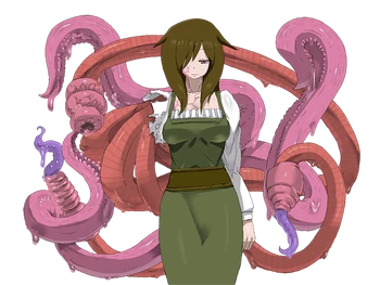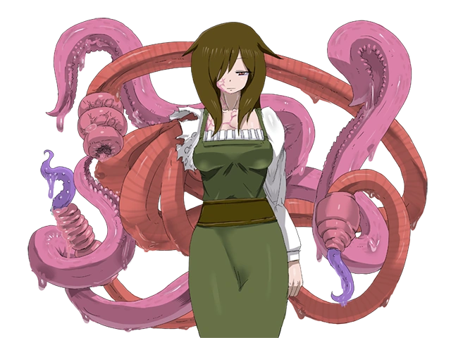 “With a tentacle for an arm, she was driven mad by Lily’s magic. Though her personality has been twisted, she retains the intelligence and memories she had from before she was transformed, but due to Lily’s corruption, she can’t stop herself from desiring male semen. Crushed by the desire, she uses her tentacle to force men to sate her thirst. Since her tentacle was designed specifically to force men to ejaculate, the pleasure is extremely potent.