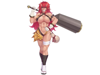 “A monster who boasts incredible strength and is among the strongest of Youkai. Her body is one of the toughest among monsters and she is feared among adventurers and warriors alike for her strength. She usually has a rough personality and a violent temperament, but her mood varies wildly and she has been known to occasionally help humans. However, she is usually targeting humans to steal their goods and semen, and is no different from other dangerous monsters.